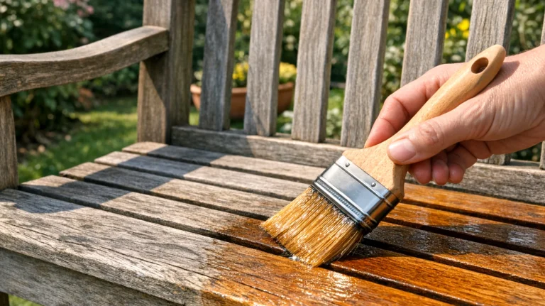 - Legno: un olio protettivo per esterni — teak oil, olio di lino cotto o prodotti specifici per legno da giardino — penetra nelle fibre e le impermeabilizza dall’interno, senza formare una pellicola superficiale che si scrosta. Va applicato su legno pulito e asciutto, con un panno morbido o un pennello, lasciando assorbire prima di dare un secondo strato se necessario.